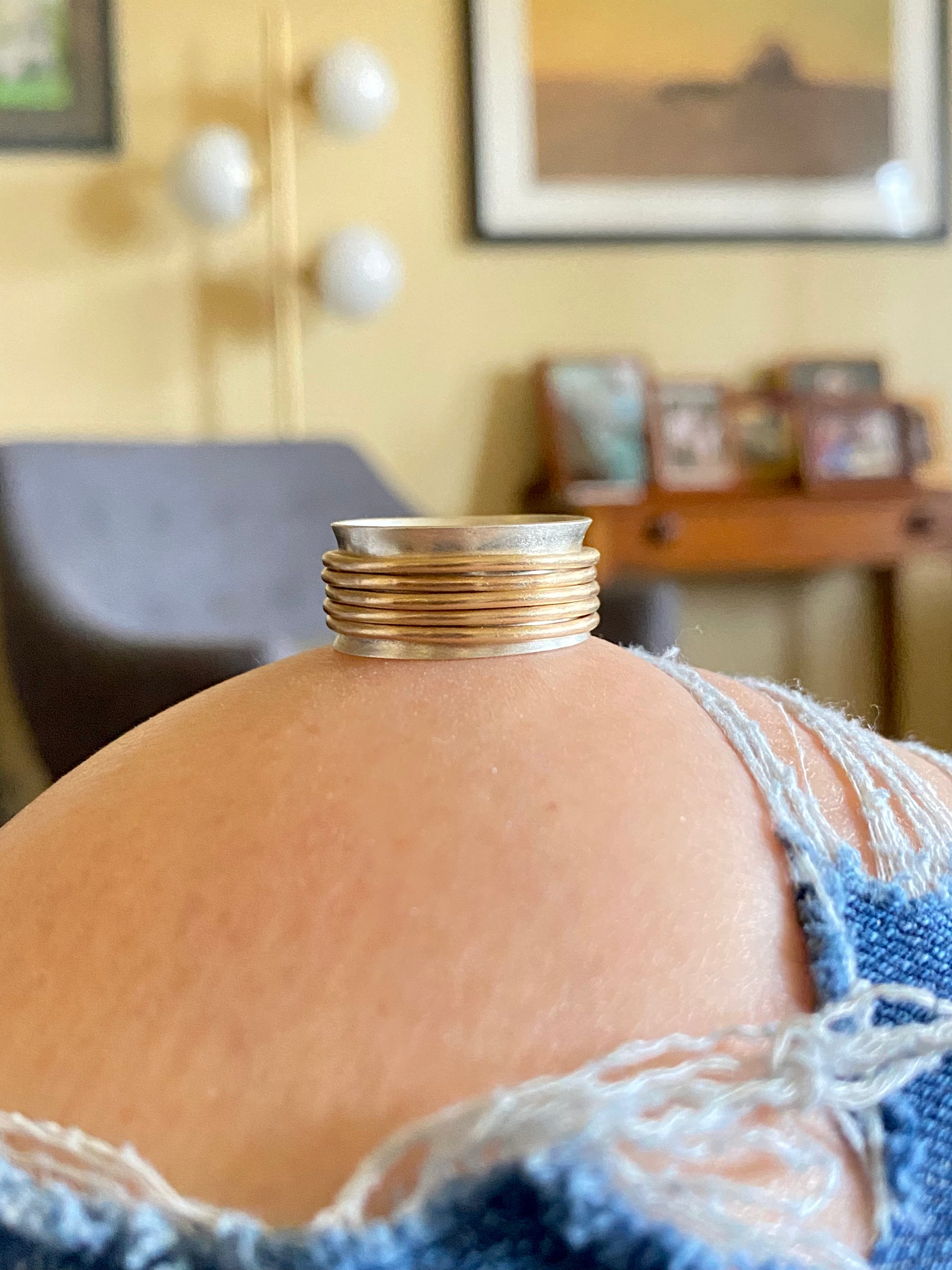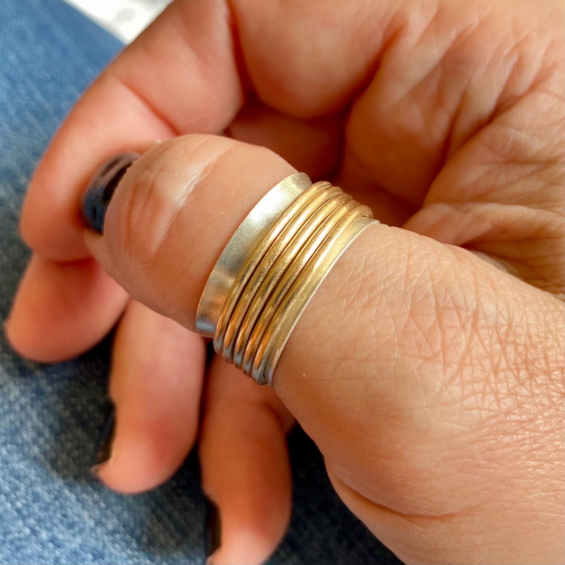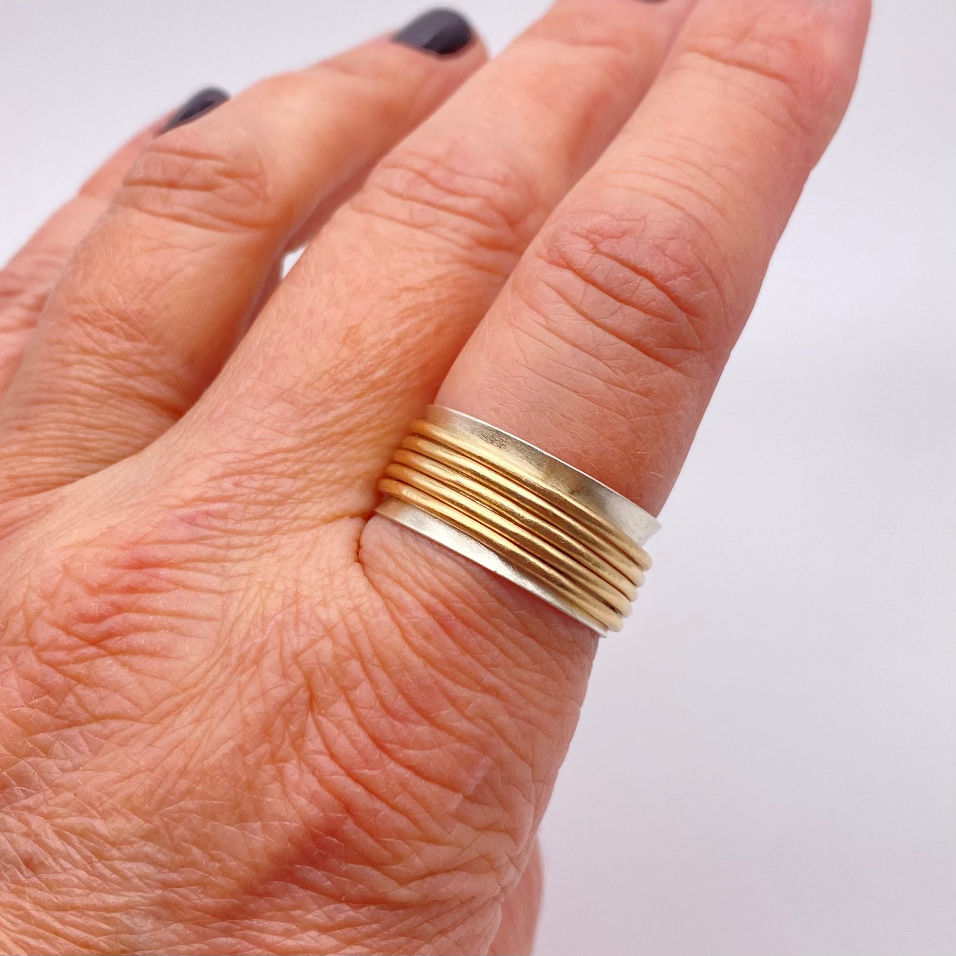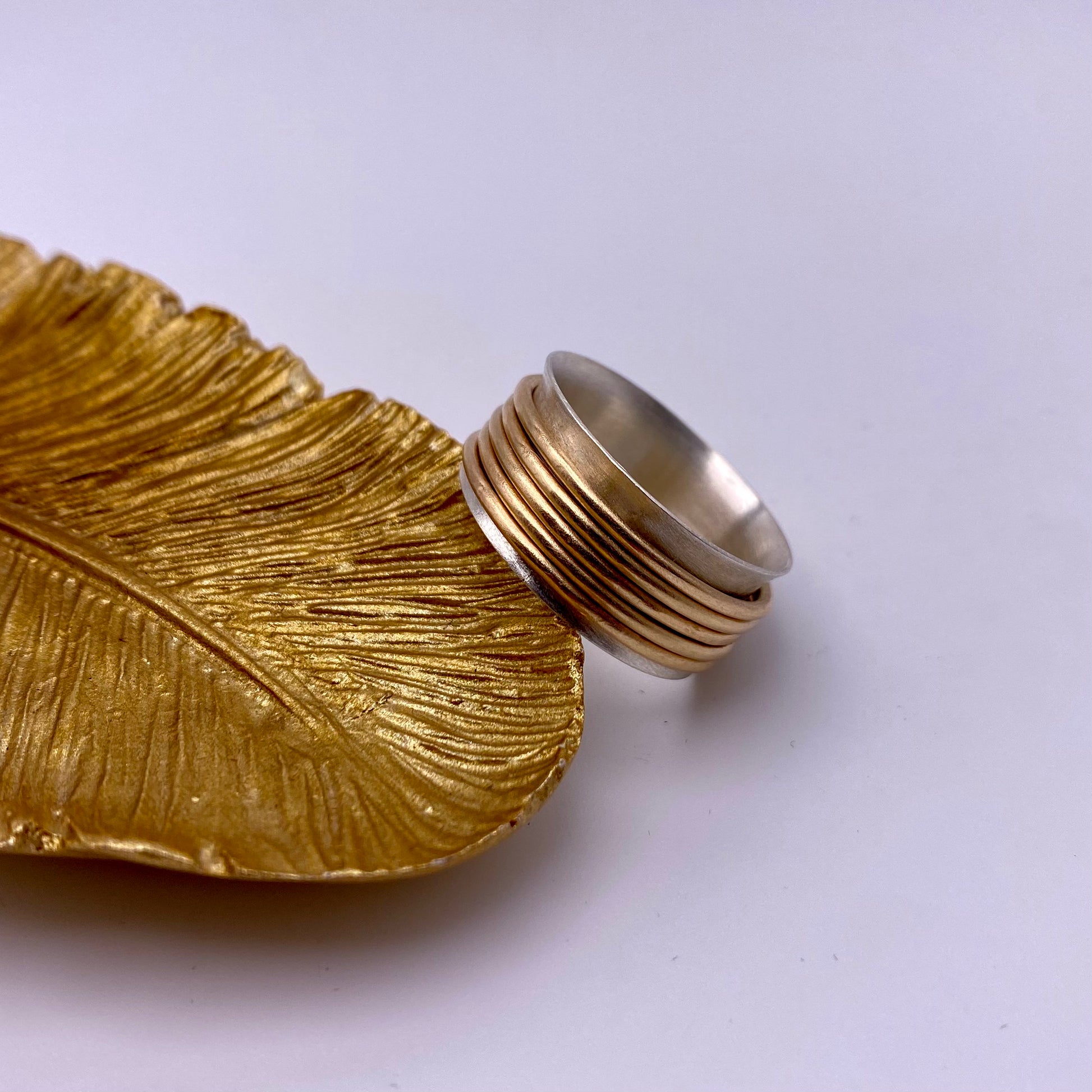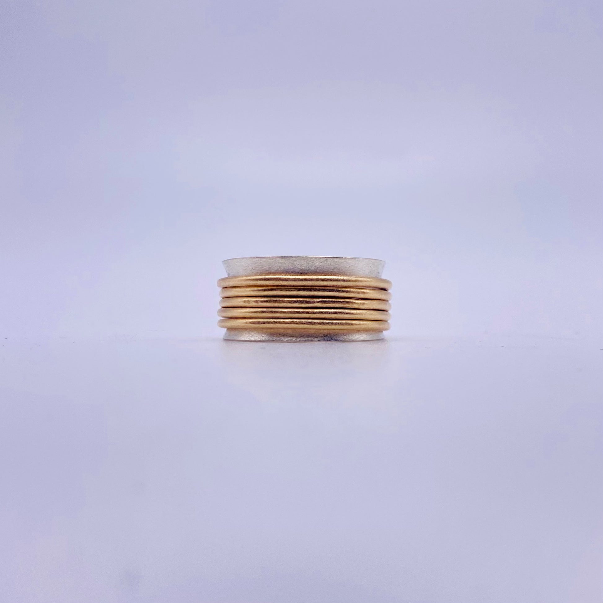 Sterling silver wide band paired with 14/20 gold fill spinners. Pick your spinners! 2-5 per ring ***PLEASE INDICATE IN CHECKOUT NOTES, WHAT SIZE RING YOU NEED. OR EMAIL ME at sterlingperch@gmail.com