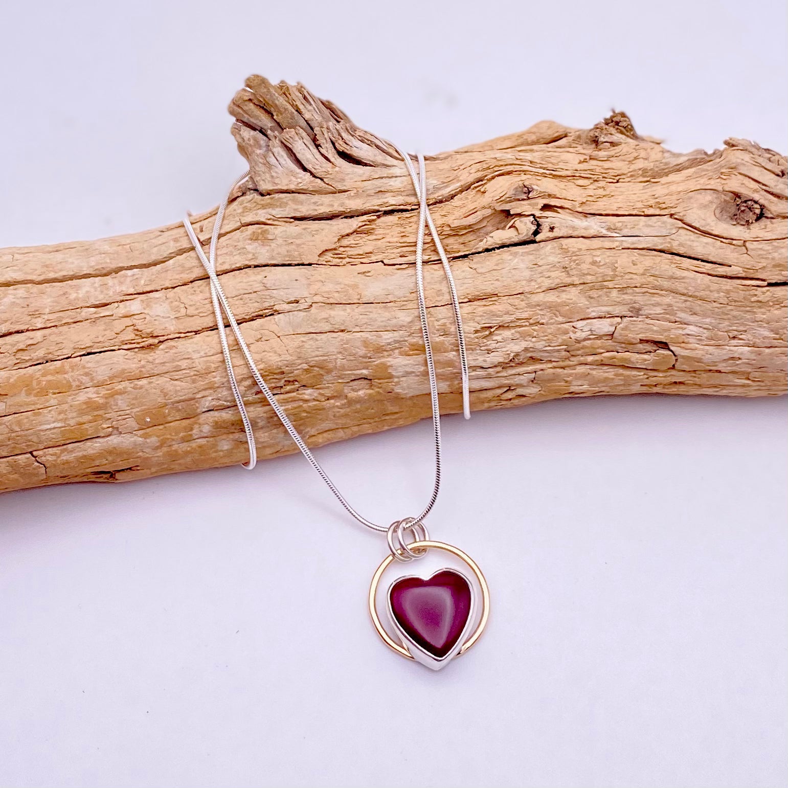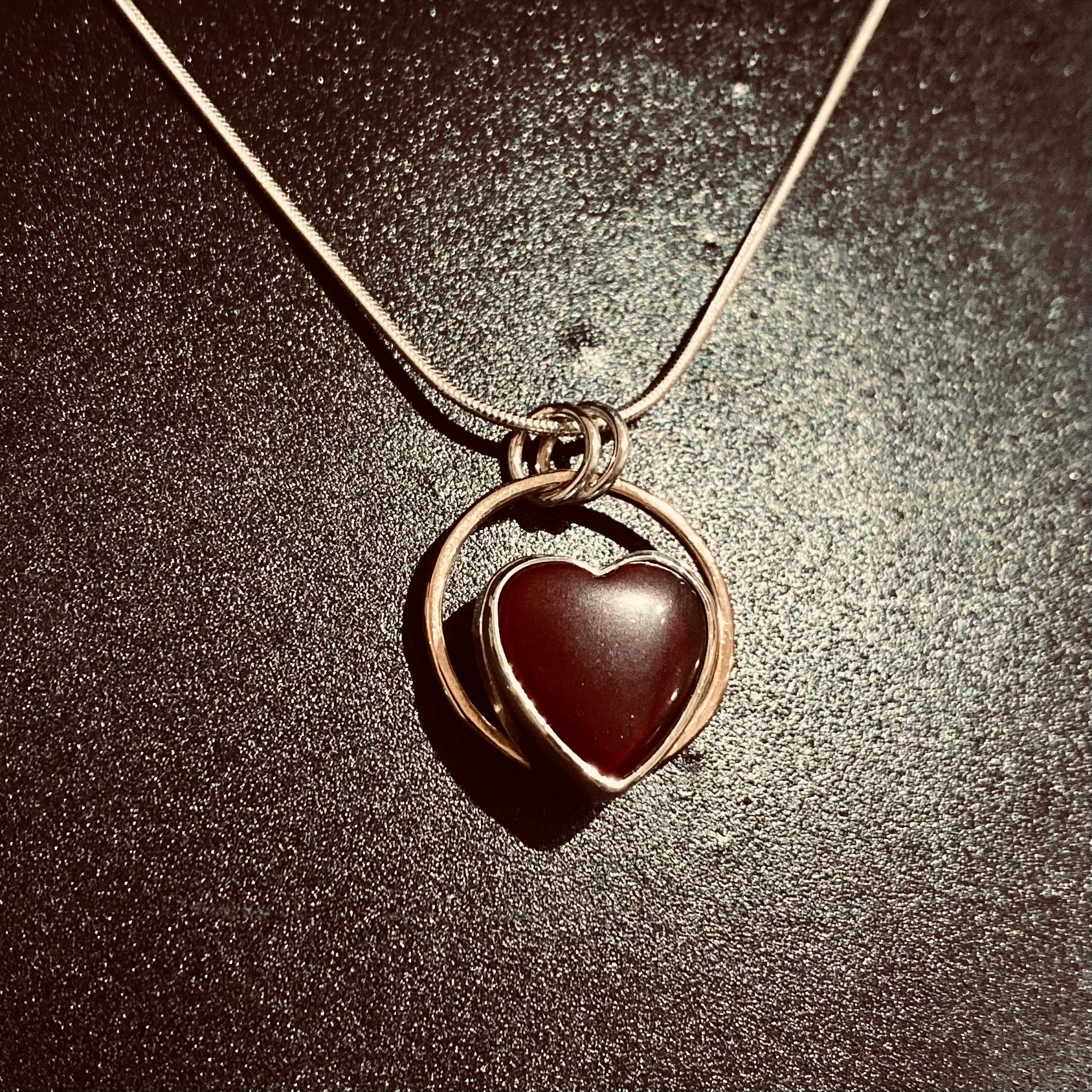 One of a kind rich red Rosarita mini heart hugged in sterling silver with a soul of *gold halo. Perfect for that person who’s got your heart and soul!!